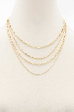 4 Layered Metal Chain Pearl Pendant Necklace Earring Set