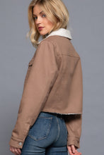 Stay cozy and stylish with our Button Closure Sherpa-Lined Twill Jacket, a perfect blend of comfort and sophistication. This long-sleeve jacket features a front button closure and is lined with soft sherpa, making it ideal for cooler days.