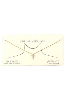 Dainty Rhinestone Cross Charm Collar Necklace